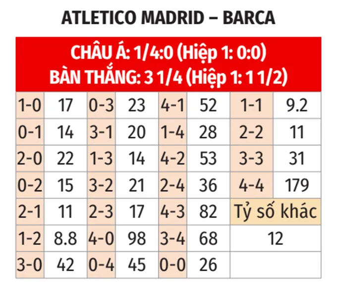 - Barca Ghi Bàn Sớm: Đội bóng của HLV Flick có thói quen mở tỷ số ngay trong hiệp 1, đặc biệt là trong 9/10 lần gặp Atletico gần đây và ở 3/4 chuyến làm khách tại Metropolitano.